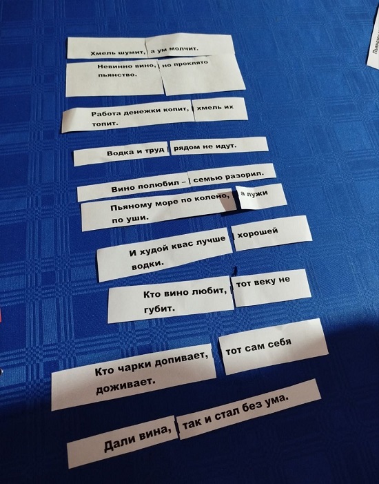 Мероприятие открылось рассказом ведущих о том, какие бывают пагубные привычки и какой колоссальный вред они наносят организму человека. Как уберечься от вреда? В помощь нашим мальчишкам и девчонкам занятия творчеством, науками, танцами, спортом. Также в ходе мероприятия подростки ответили на вопросы викторины, разгадали анаграммы, собрали пословицы, ответили на вопросы анкеты, посмотрели обучающие ролики.